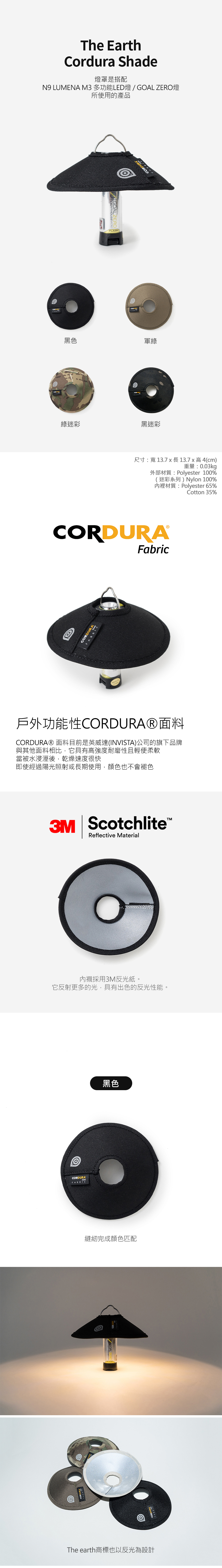 The Earth Cordura Shade 燈罩是搭配 N9 LUMENA M3 多功能LED燈/GOAL ZERO燈 所使用的產品