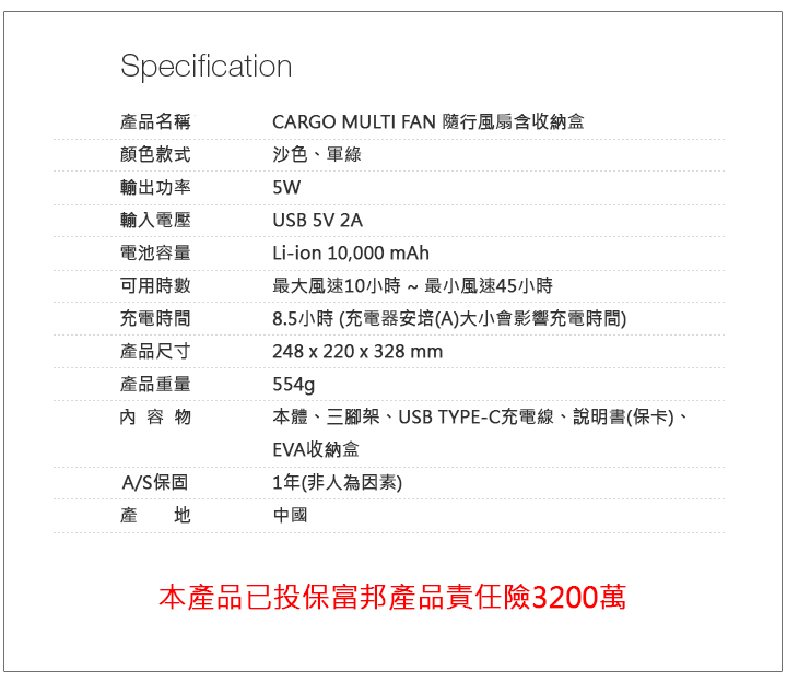 .10,000mAh,搭配5片扇葉帶來強勁的風量