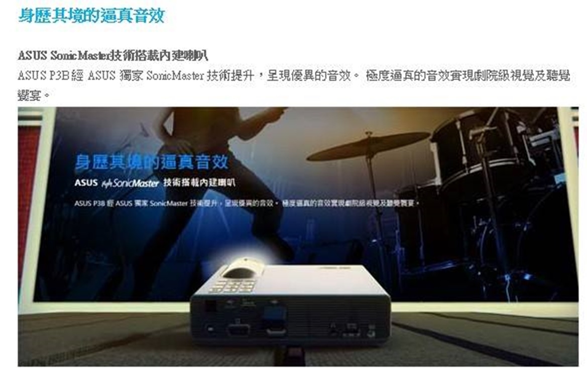 華碩P3B可攜式行動電源LED投影機上市超短焦、大畫面工作、娛樂一機滿足