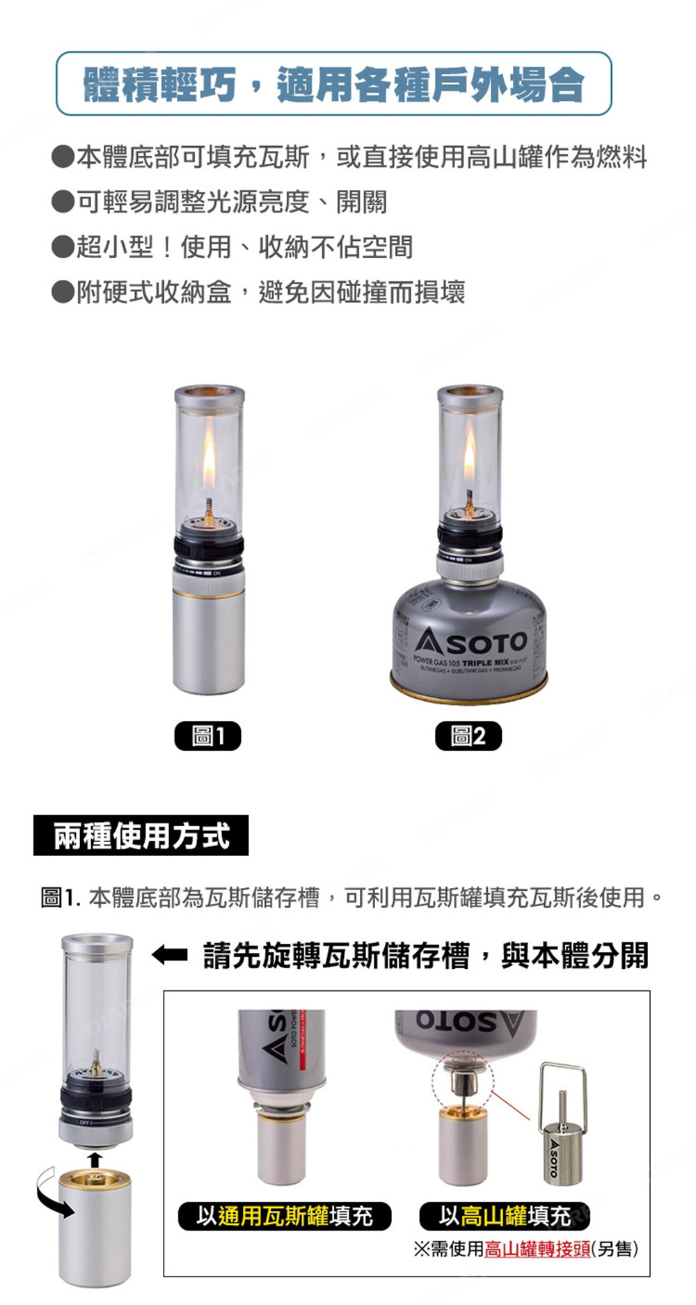 ●本體底部可填充瓦斯,或直接使用高山罐作為燃料