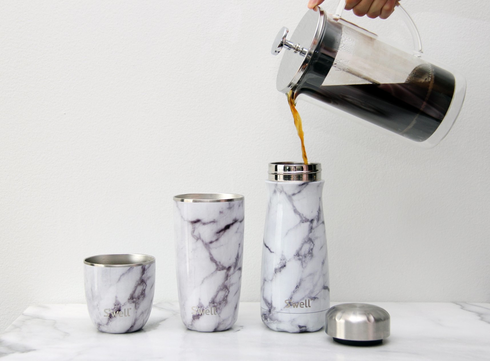 任何液體 ! 水、葡萄酒、啤酒、雞尾酒、咖啡、熱巧克力、任何湯品。 S'well 水壺可以裝入任何液體。
