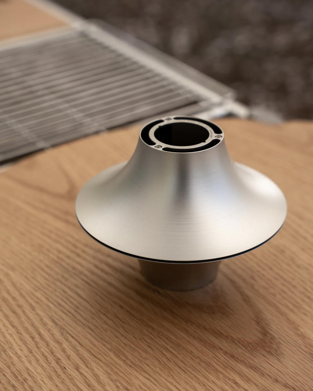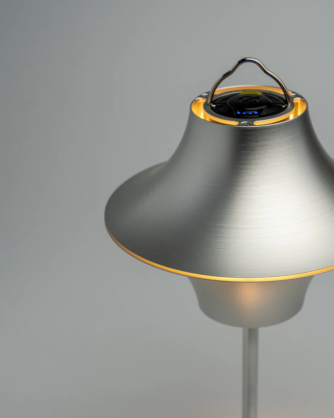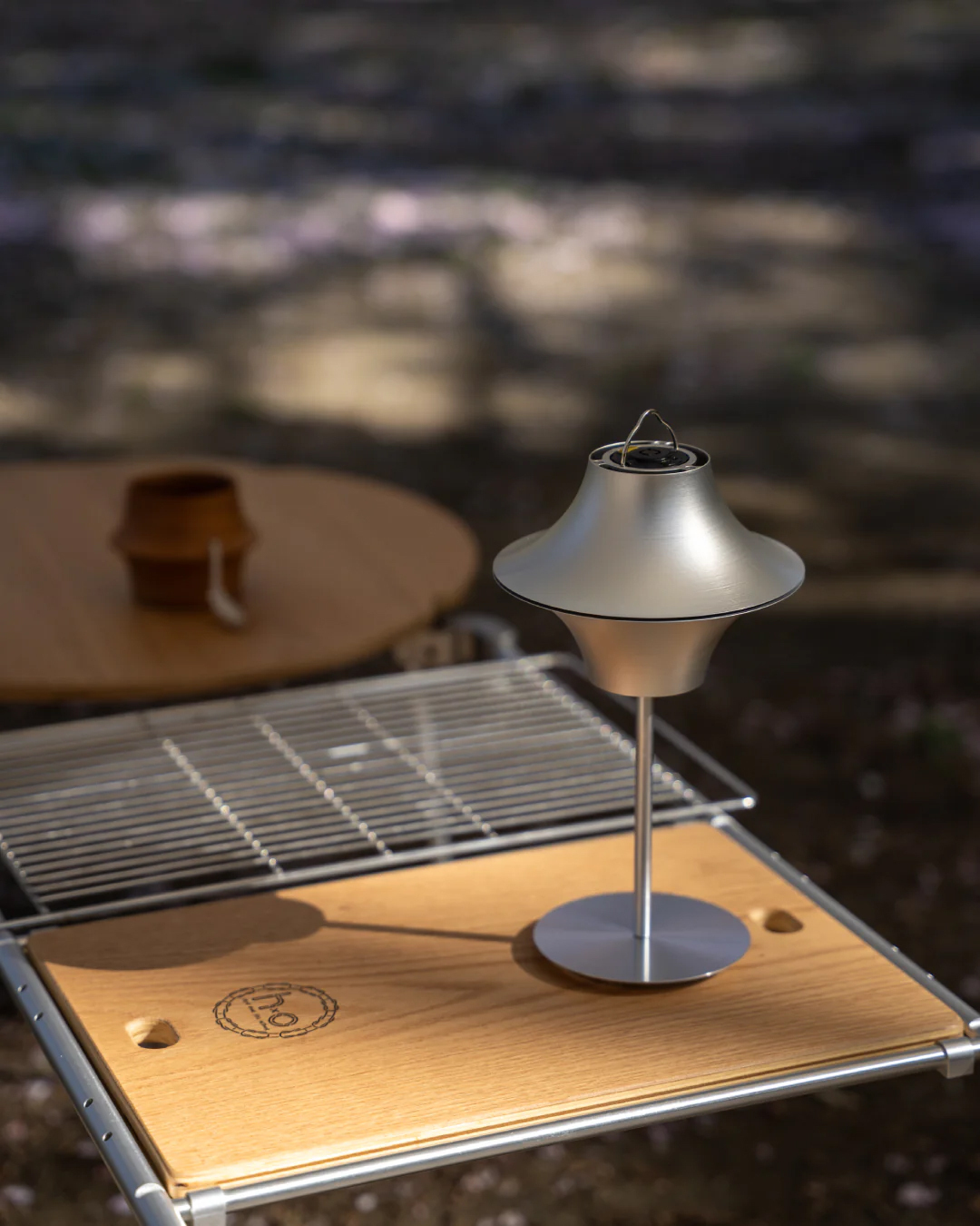採用CNC整塊鋁合金削切成型,搭配細膩陽極處理,讓器物在未點燈時亦保有低調而純粹的存在感;點燈後,光影流動,瞬間轉化為戶外與室內皆適用的氛圍核心。