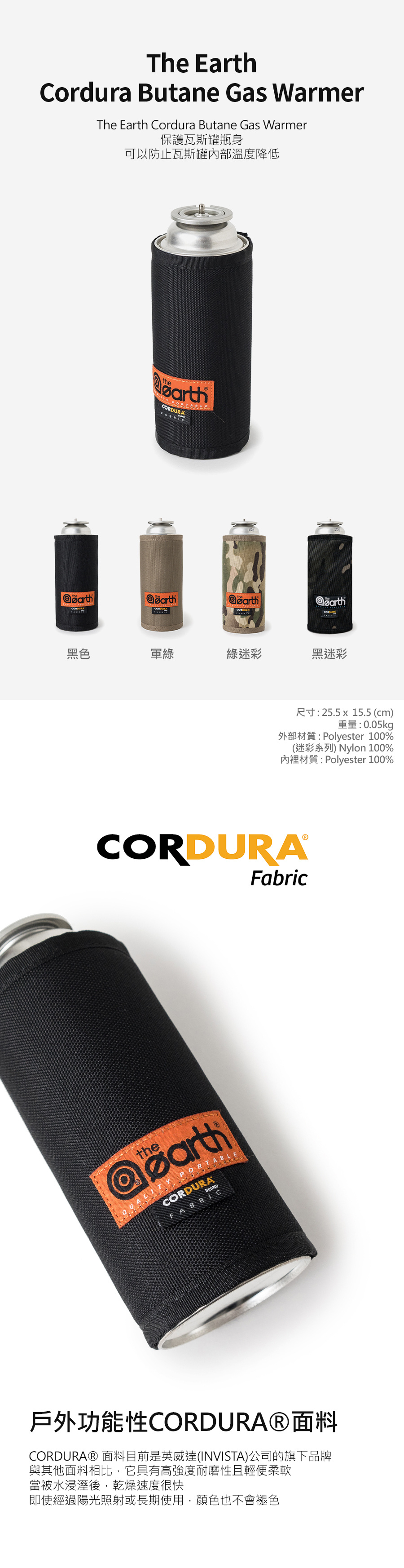 The Earth Cordura Butane Gas Warmer 保護瓦斯罐瓶身 可以防止瓦斯罐內部溫度降低。