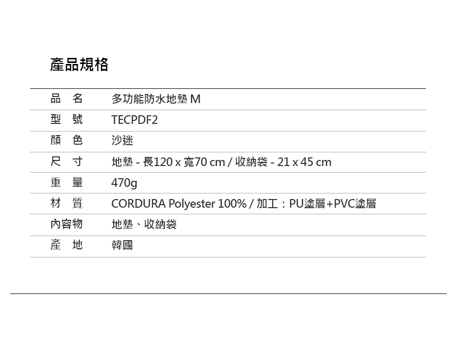 地墊背面為防水處理,強化PVC塗層耐磨防水舒適可作為內外墊使用