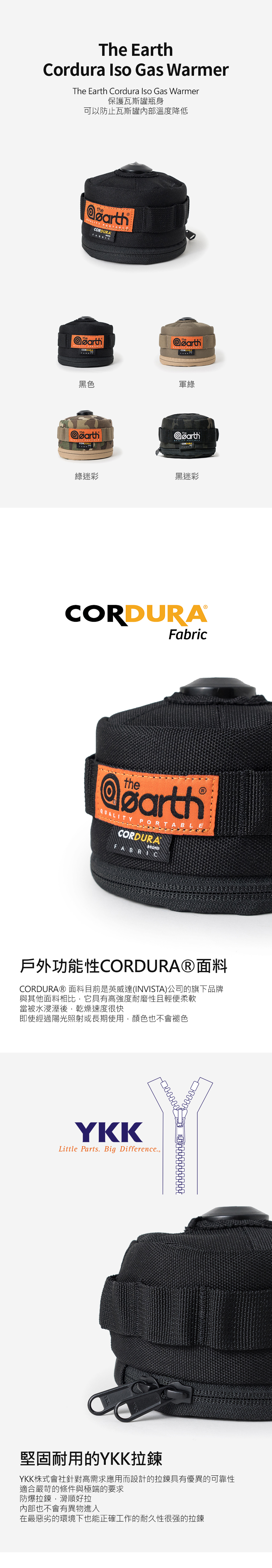 The Earth Cordura Iso Gas Warmer高山瓦斯罐保護套保護瓦斯罐瓶身 可以防止万斯罐內部溫度降低。